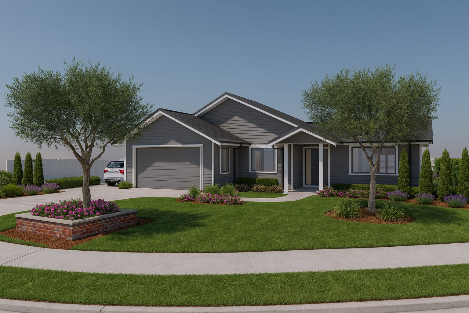 - Landscaped Section – Low-maintenance outdoor spaces designed for easy living
