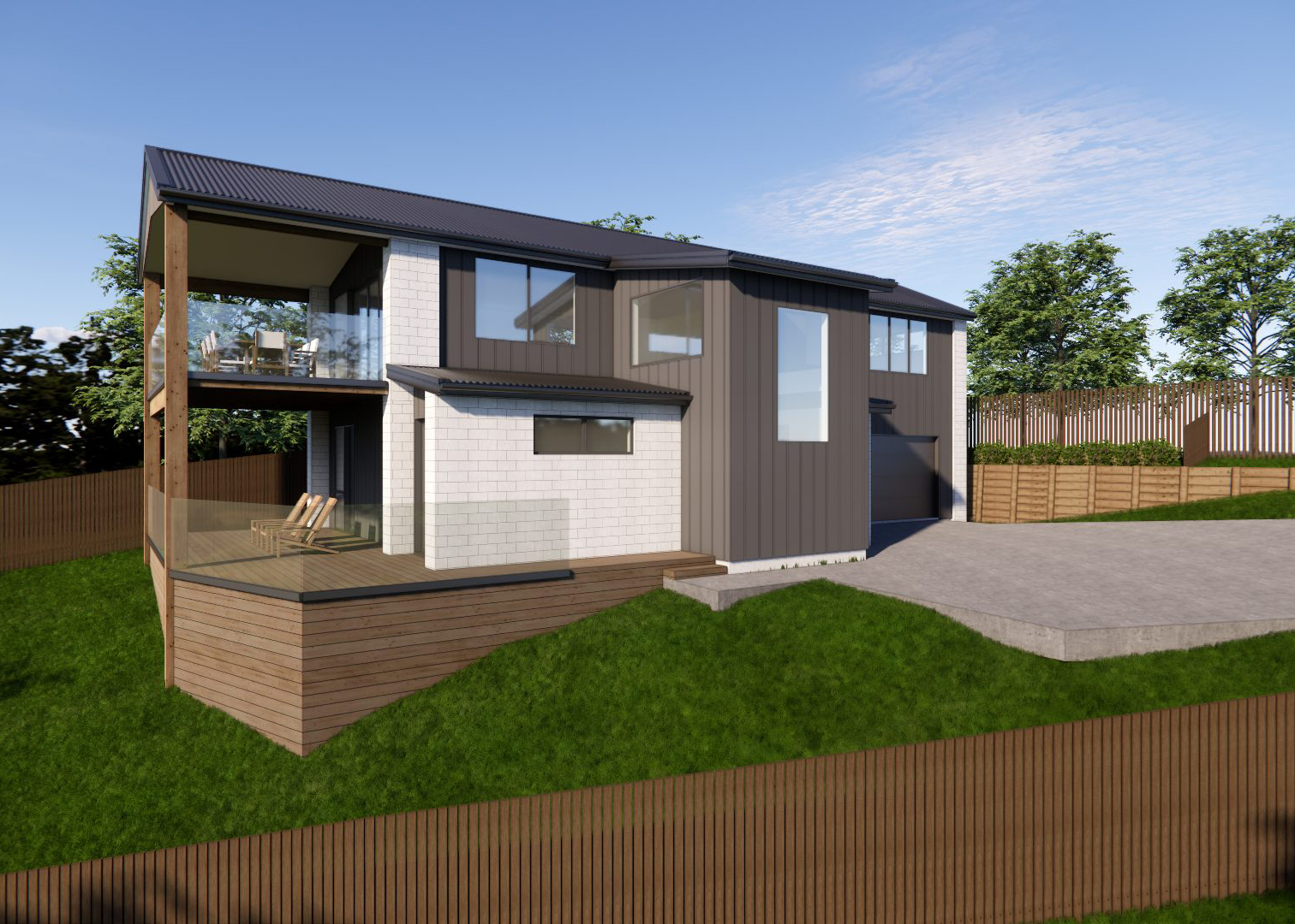 The open-plan design is light-filled and airy, with raking ceilings that enhance the sense of space. The designer kitchen, complete with a walk-in pantry, flows effortlessly into the dining and living areas, making it ideal for entertaining. Step outside to the covered alfresco area and soak up those stunning views while enjoying a glass of wine. Upstairs, the master suite is a true retreat with its own walk-in robe and ensuite. Two additional bedrooms, each with their own deck access and a family bathroom provide plenty of room for family or guests, and there’s a separate WC for convenience. A double garage with internal access completes the picture.